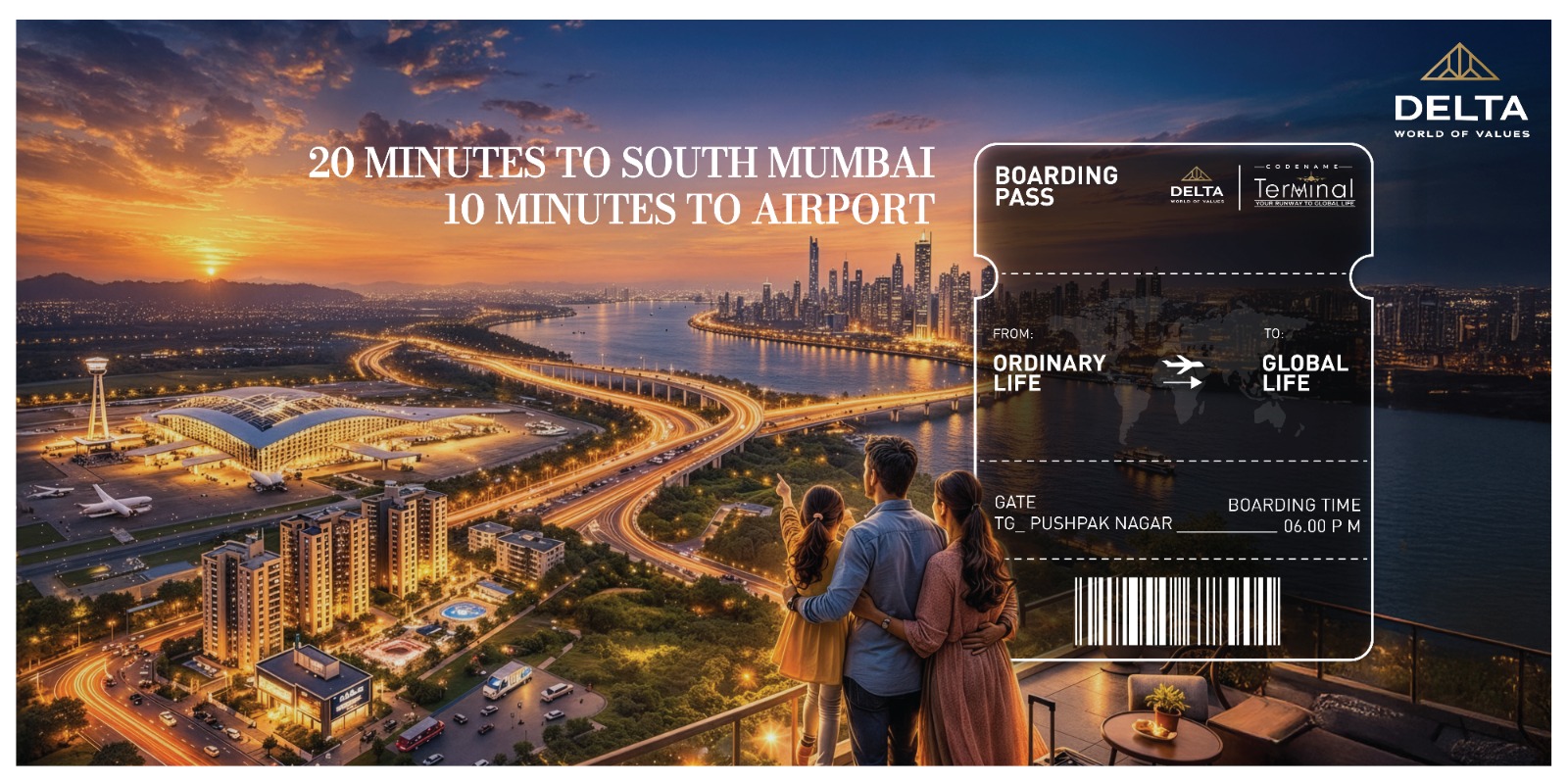 CODENAME DELTA TERMINAL – PUSHPAK NAGAR Project Overview Codename Delta Terminal is a landmark residential development designed for the future. Strategically located in Pushpak Nagar, it offers a perfect blend of high-growth investment potential and a luxury lifestyle. Property Details - Configuration: 1 & 2 BHK Premium Residences - Status: Under Construction - Connectivity: Prime location with proximity to the upcoming International Airport and MTHL. - Security: Advanced gated community features.