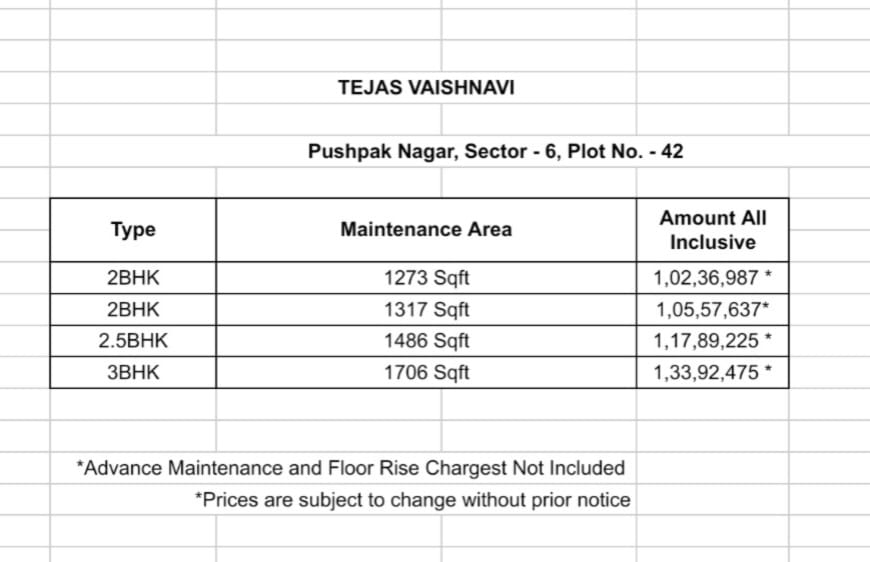 TEJAS VAISHNAVI – KAMOTHE Project Overview Tejas Vaishnavi is a signature residential development designed for elegance and comfort. Strategically located in Kamothe, this project offers a perfect blend of architectural excellence and functional living. Property Details - Configuration: 1 & 2 BHK Premium Residences - Status: Under Construction - Connectivity: Excellent access to Mansarovar & Khandeshwar stations - Security: Gated community with modern surveillance